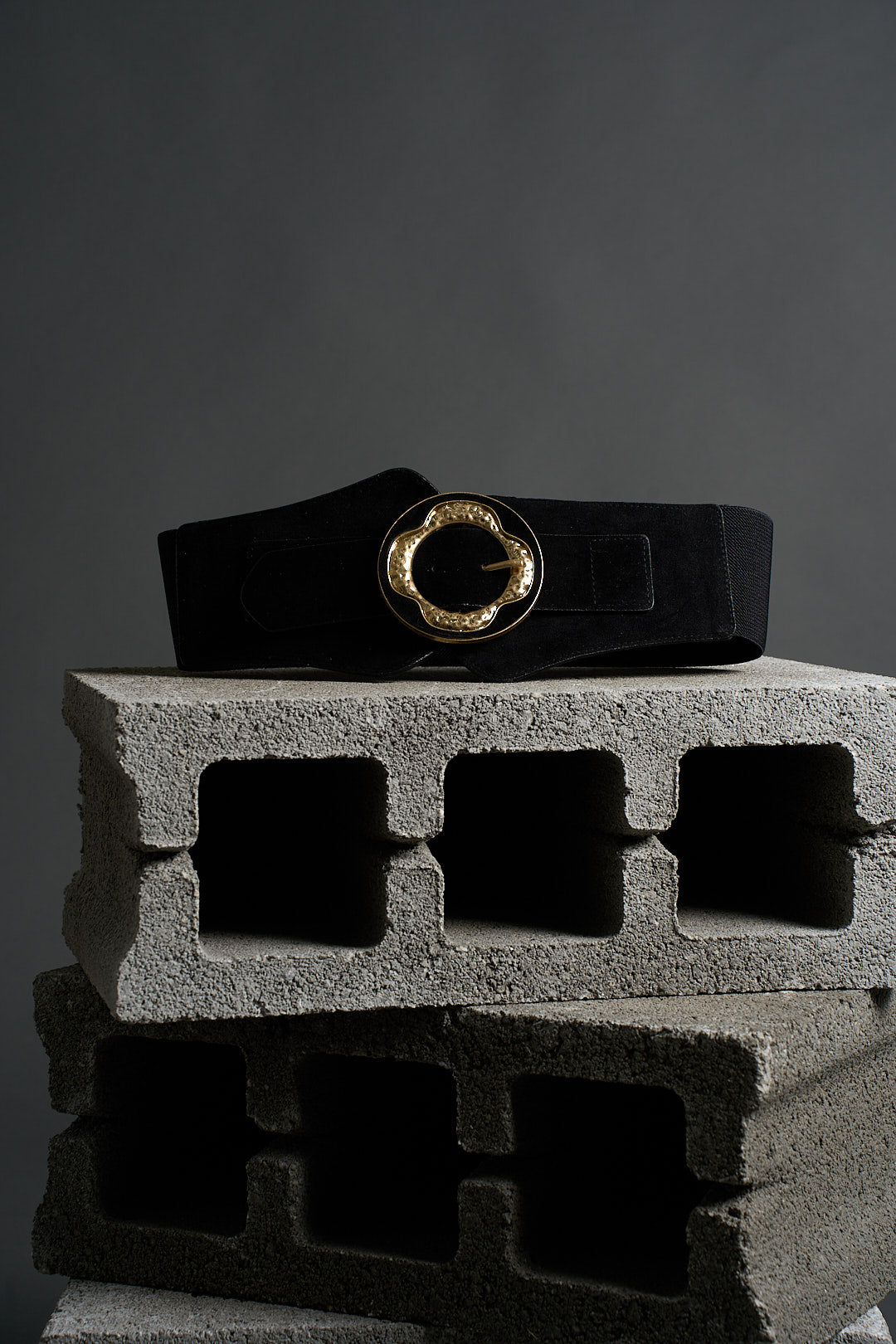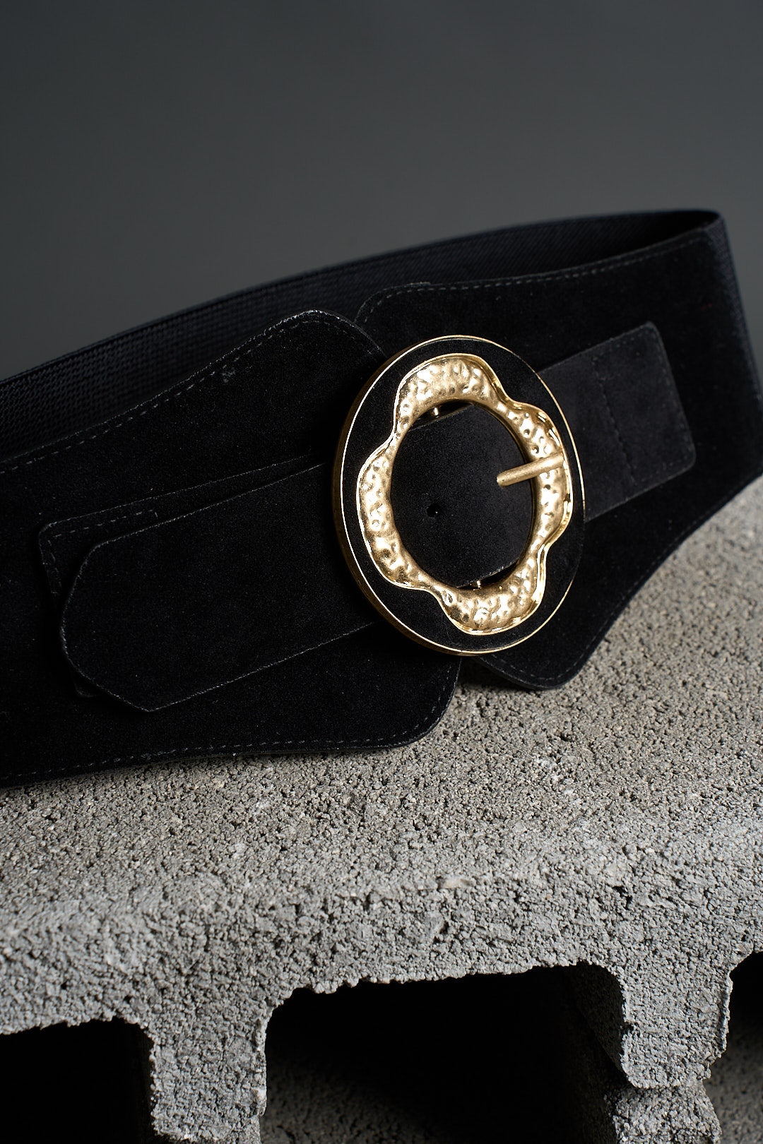 Cintura elastica con dettaglio fibbia color oro.