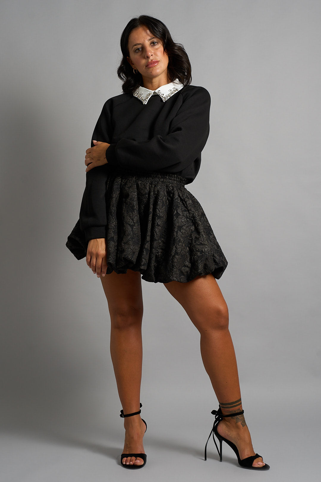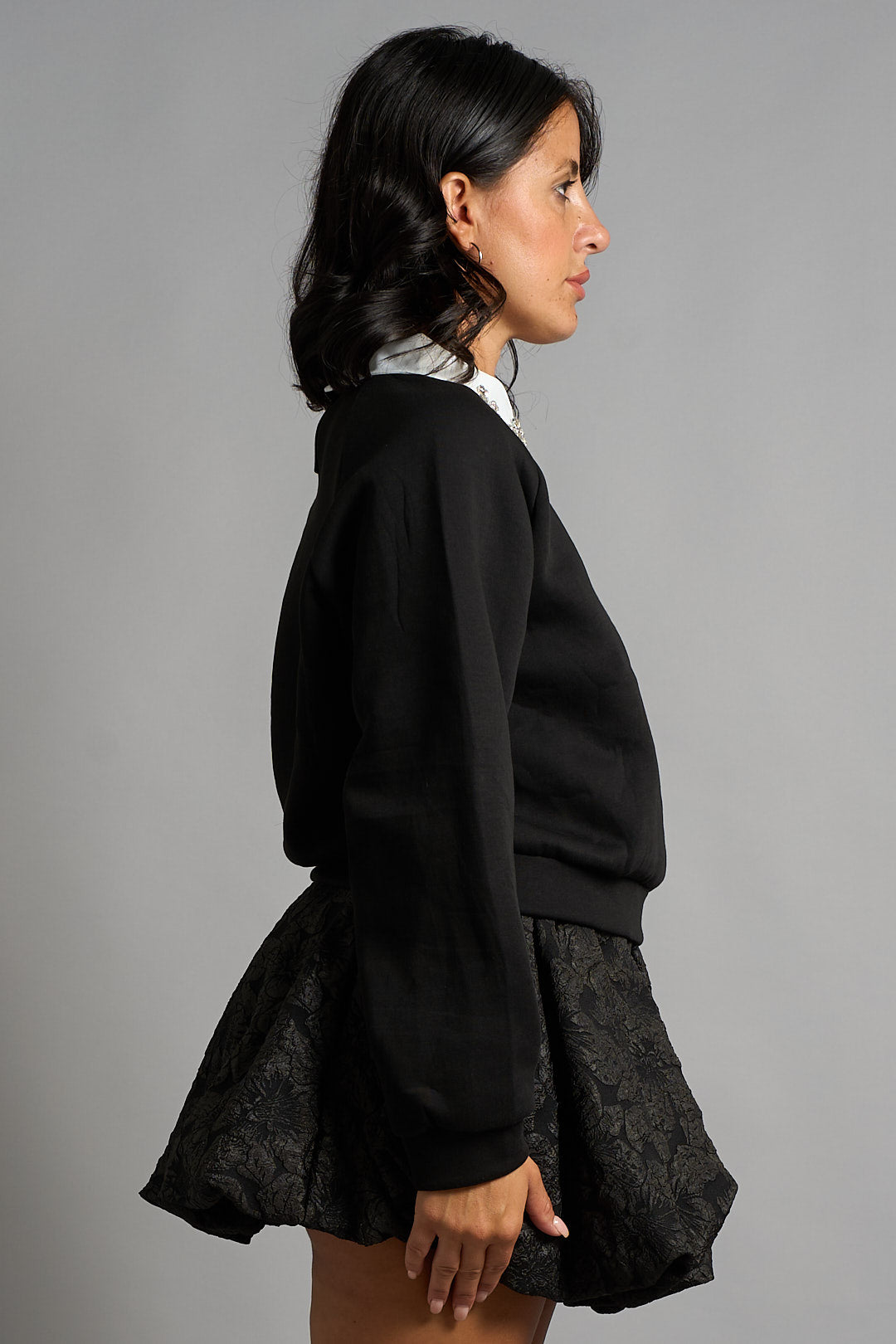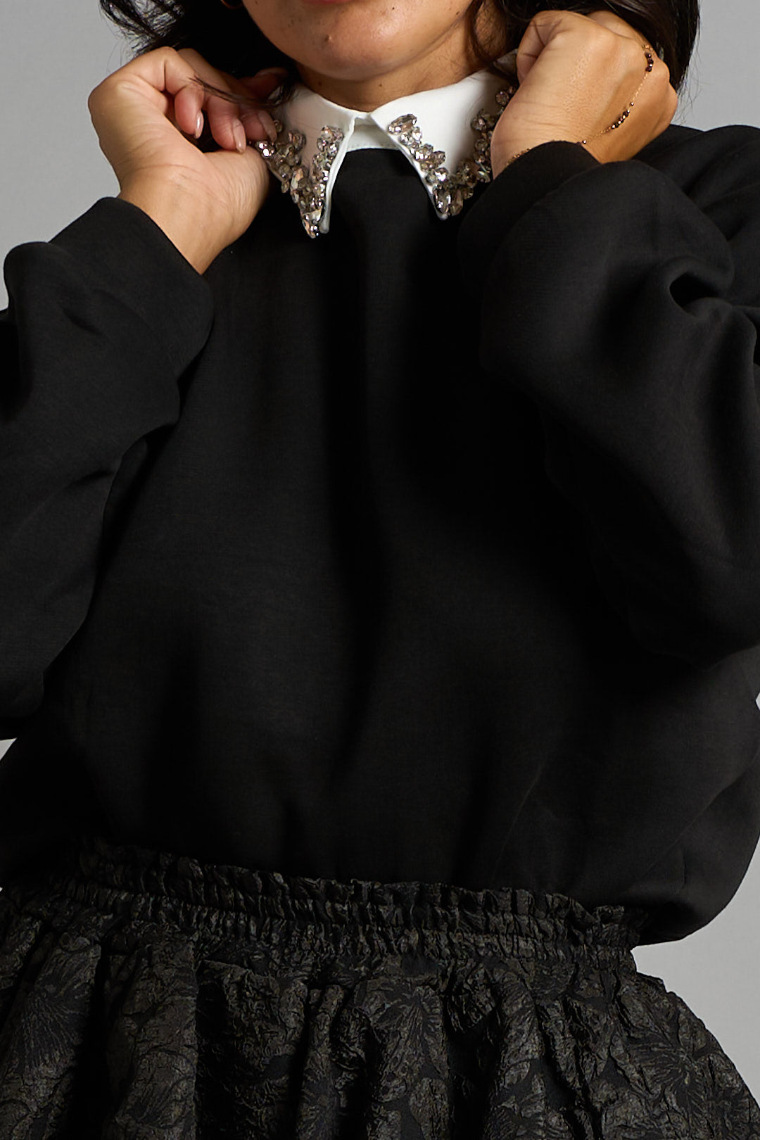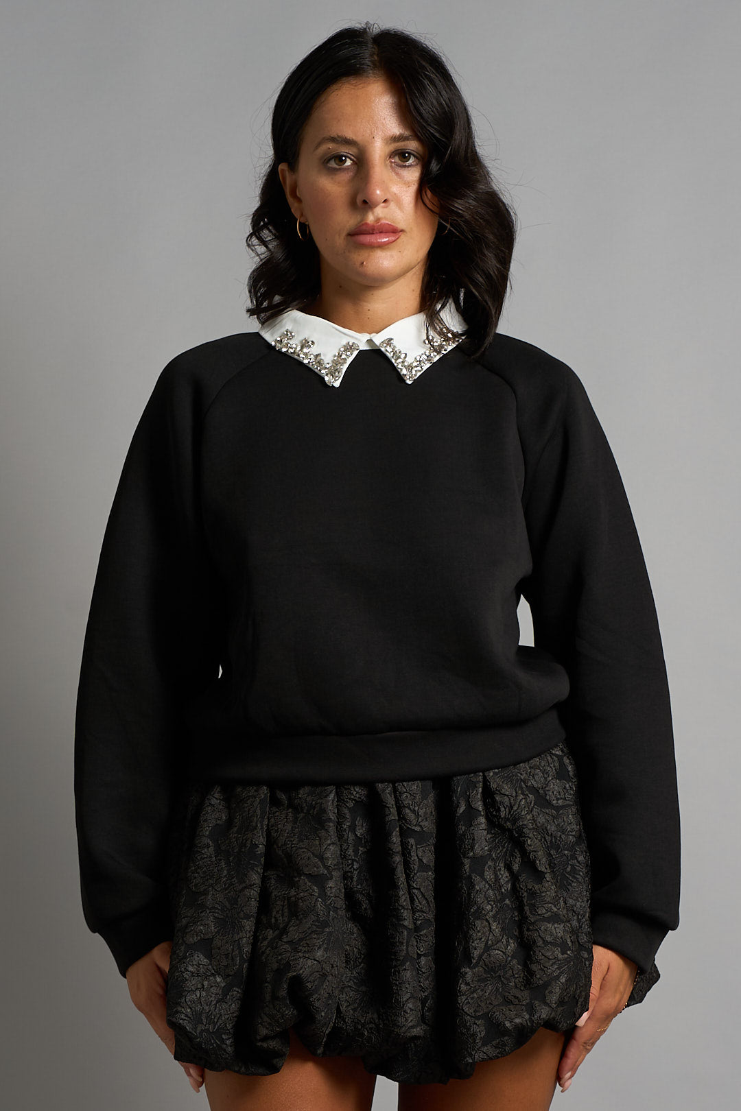 Felpa a manica lunga con colletto in cotone e applicazioni di strass effetto diamante. Vestibilità cropped e chiusura posteriore con bottoni.