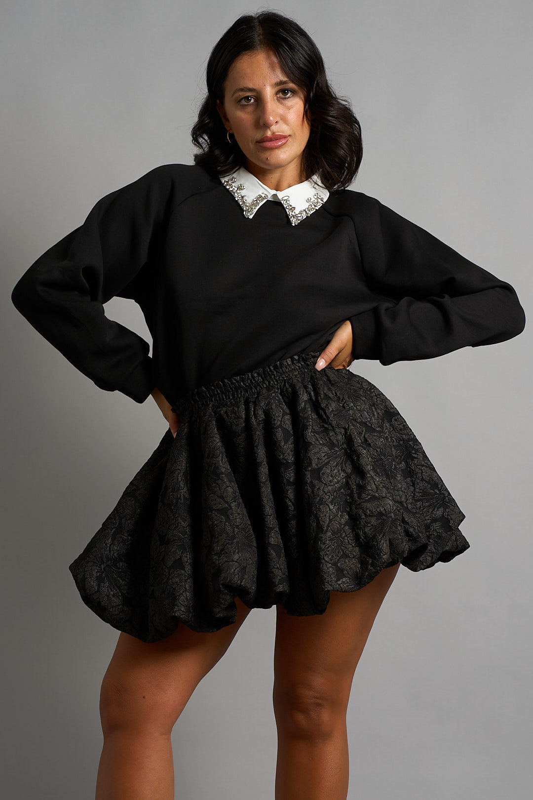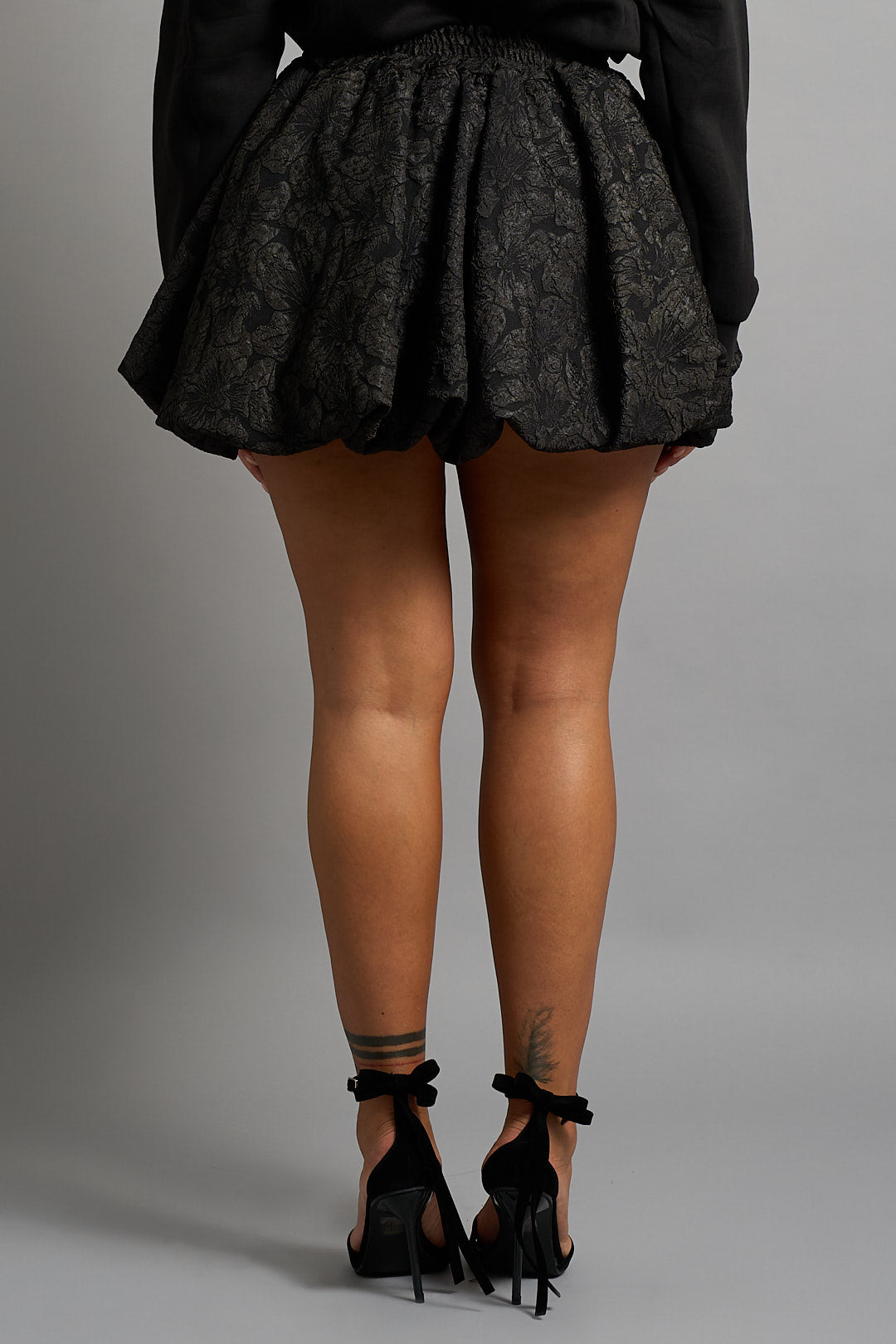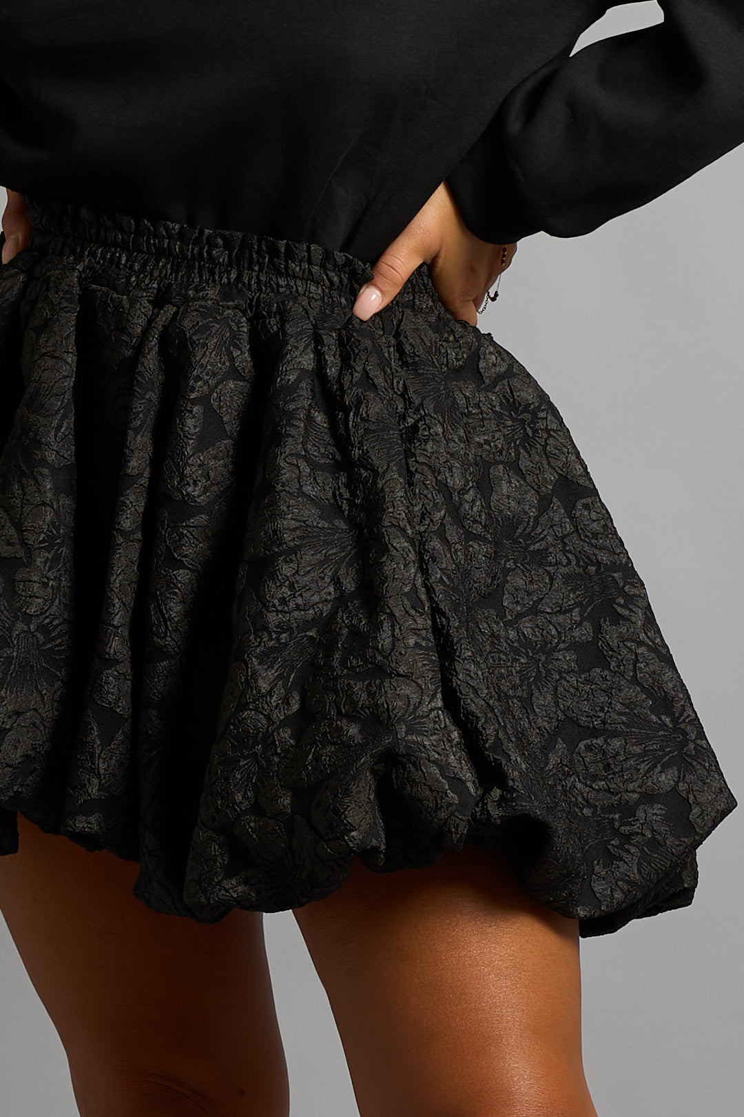 Mini gonna in tessuto damascato floreale, con elastico in vita, Vestibilità a sbuffo.