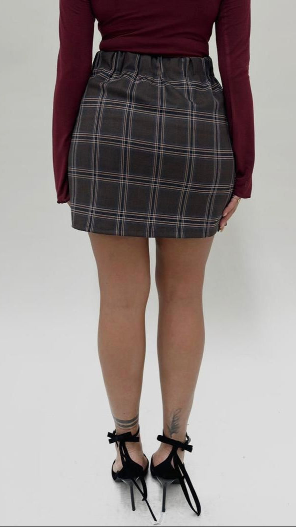 Gonna scozzese elastico sul retro applicazione cintura sul davanti. Tessuto elastico