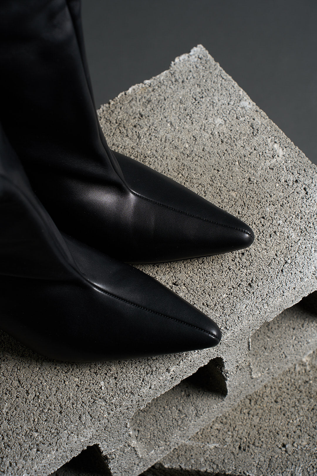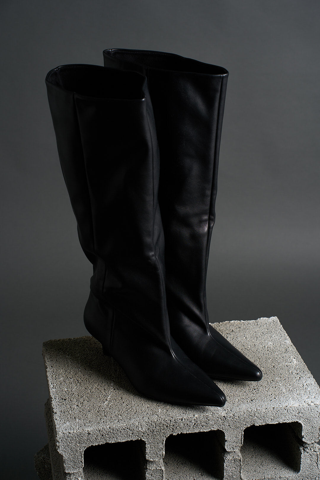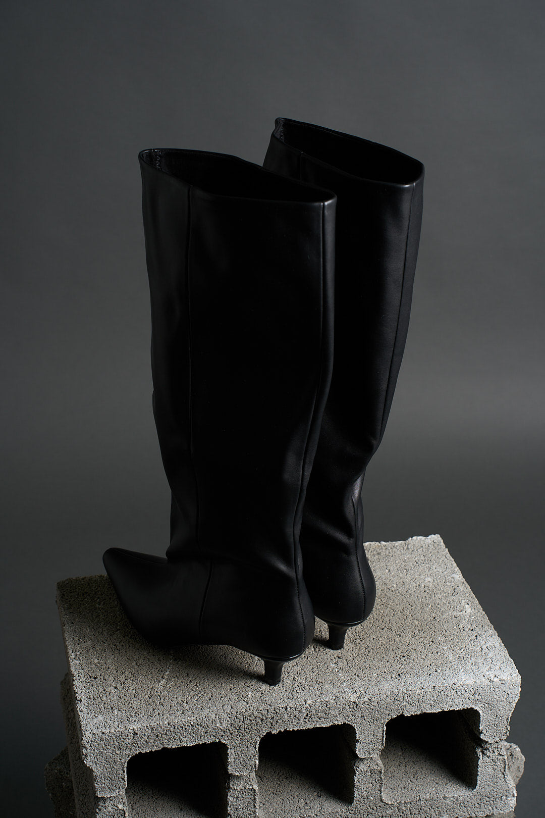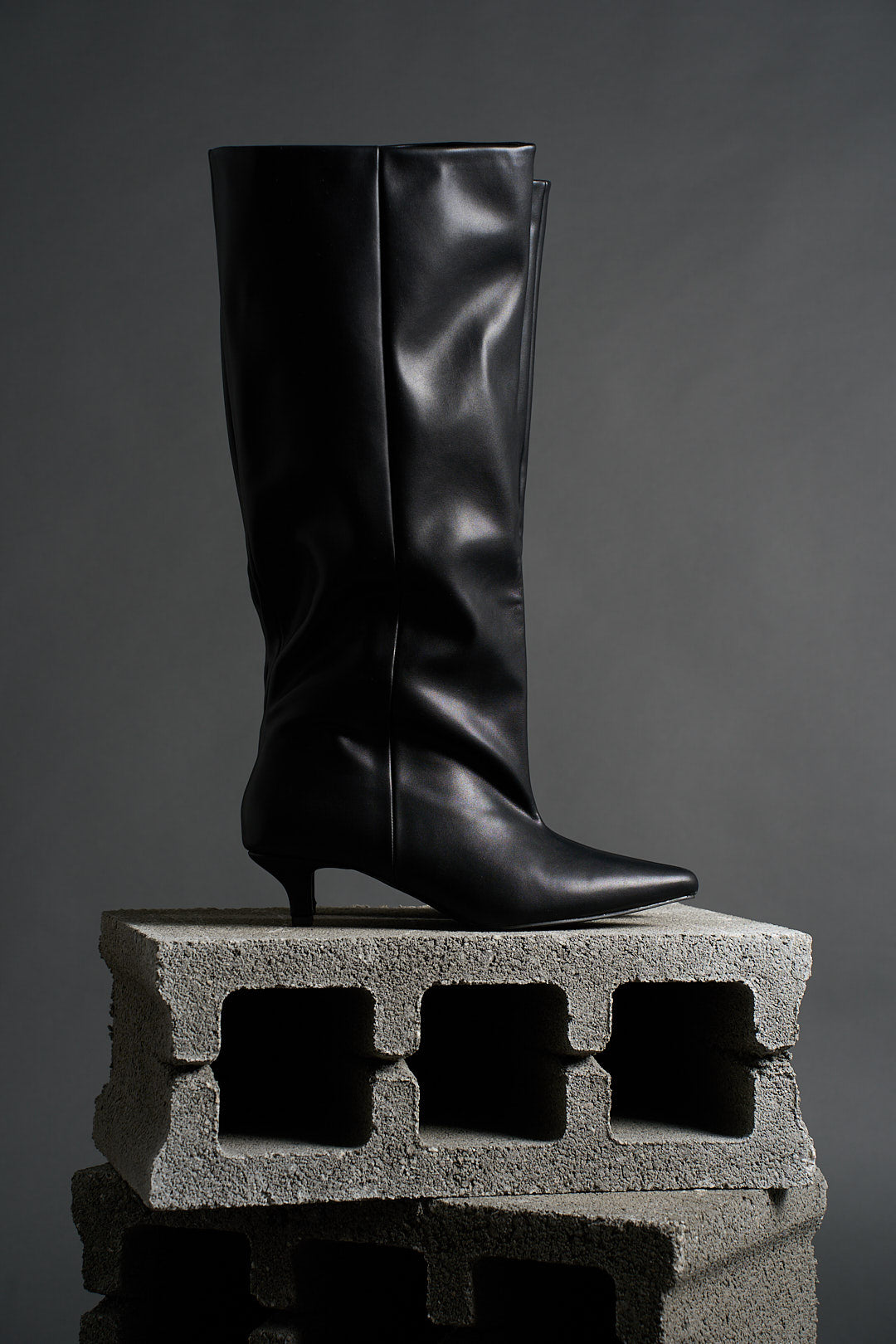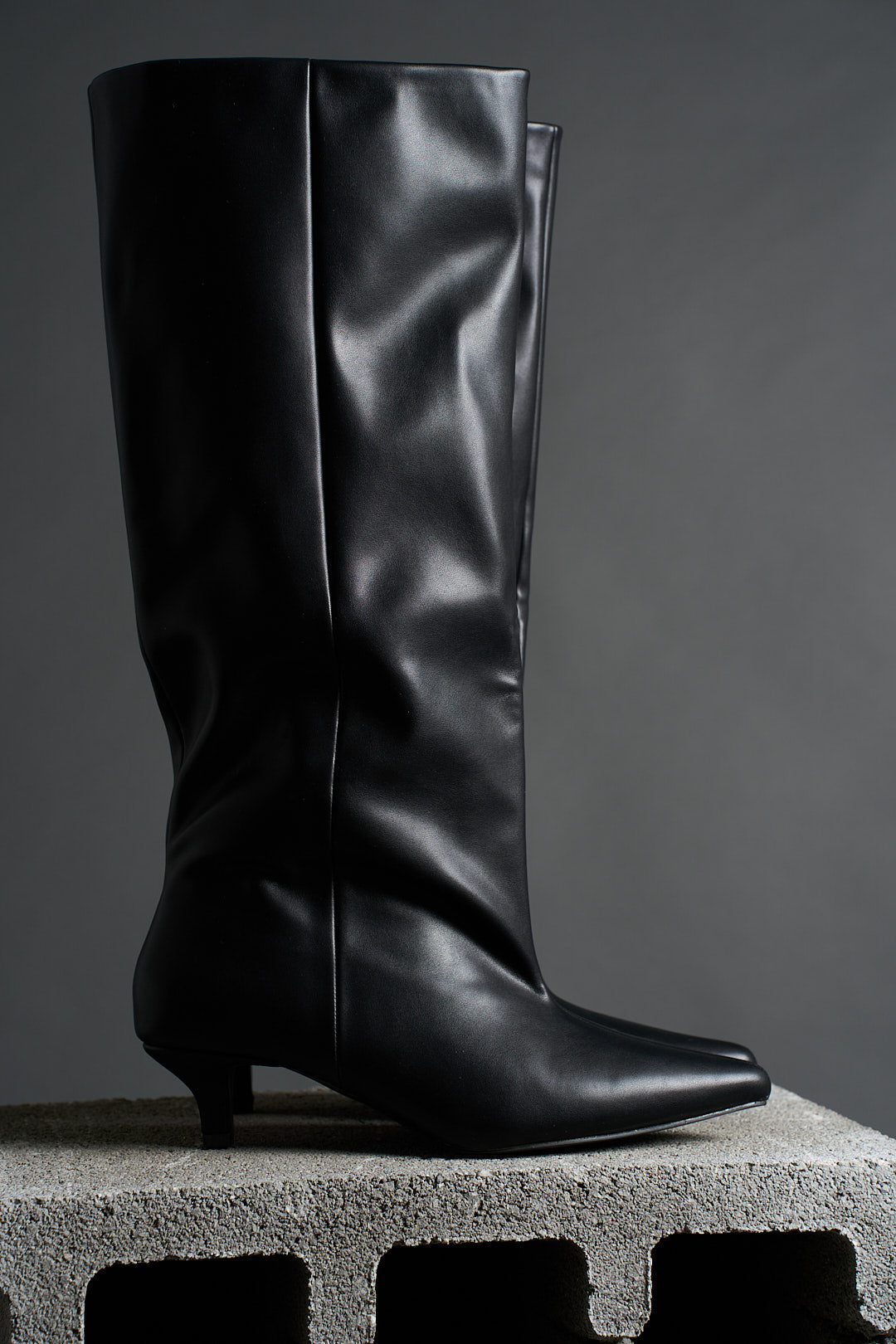 Stivale in ecopelle con gambale largo e altezza media gamba, tacco sottile
